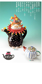 出展作家:稲垣竜一●陶芸/岡村洋子●陶芸/小出信久●ミニチュア木彫り/外山亜基雄●陶芸/はら・かおり●陶人形/東早苗●九谷焼/東直生●陶芸/ひがしりょうこ●陶芸/正木卓●陶芸/松本浩子●人形/水谷満●陶芸他/渡辺志野●陶芸